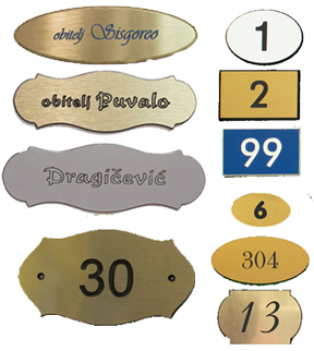 Proizvodi: privjesci za pse, natpisi za vrata, kućni brojevi,